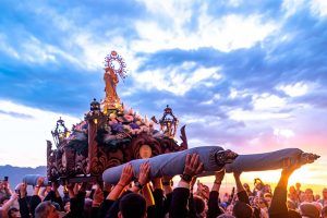 FIESTAS MAYORES DE CULLERA. dedicadas a la Mare de Déu del Castell ("La Moreneta"), fueron declaradas Bien de Interés Cultural (BIC) inmaterial por la Generalitat Valenciana en abril de 2024. Comienzan desde el sábado siguiente a Pascua hasta el domingo de la semana siguiente.