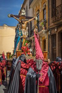 Fiesta de Interés Turístico Provincial. Es una de las más destacadas de la Comunidad Valenciana, ya que son un total de 6 cofradías y hermandades las que participan en las numerosas procesiones. Las Turutas son el elemento diferenciador, vestidas totalmente de negro y se caracterizan porque llevan un instrumento en forma de cono que al hacerlo sonar produce un sonido grave. La Sangre de Cristo es la más antigua del pueblo, siendo su origen en el siglo XVI. Una de las tradiciones más queridas en esta semana, es ir a tomar el Hornazo (mona de Pascua) a la Virgen del Rosario.